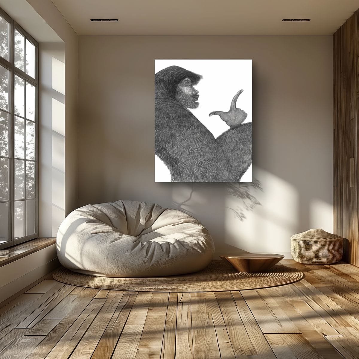 Wrapped in mystery and message, Bagman Storyteller (S/N 50) by Charles Bibbs embodies the quiet power of oral tradition and cultural witness. Rendered in masterful crosshatch detail, the figure gestures mid-story—half shadow, half symbol—inviting the viewer into a narrative rooted in resilience. His face, subtly marked with sacred patterns, hints at ancestral memory and spiritual knowing. Bibbs’ minimalist palette draws attention to form and intention, allowing gesture and gaze to speak volumes. This work honors the timeless role of the Black storyteller as both historian and visionary.