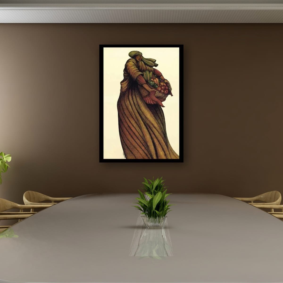 In Blessed Harvest, acclaimed artist Charles Bibbs channels spiritual dignity and cultural memory into a powerful lithograph that honors abundance, resilience, and tradition. The central figure, robed in earthy tones and adorned in a green head wrap, cradles a basket overflowing with fruit and vegetables—symbols of provision, growth, and ancestral stewardship. Bibbs’ signature blend of Afrocentric design, flowing lines, and tonal richness creates a visual rhythm that feels both grounded and transcendent. Rooted in African American heritage, this piece invites viewers to reflect on the strength of generations, cultural pride, and the sacred beauty of harvest. Whether framed in a gallery wall or given as a meaningful gift, Blessed Harvest becomes a soulful presence in any space—a lasting tribute to the grace and power of legacy.