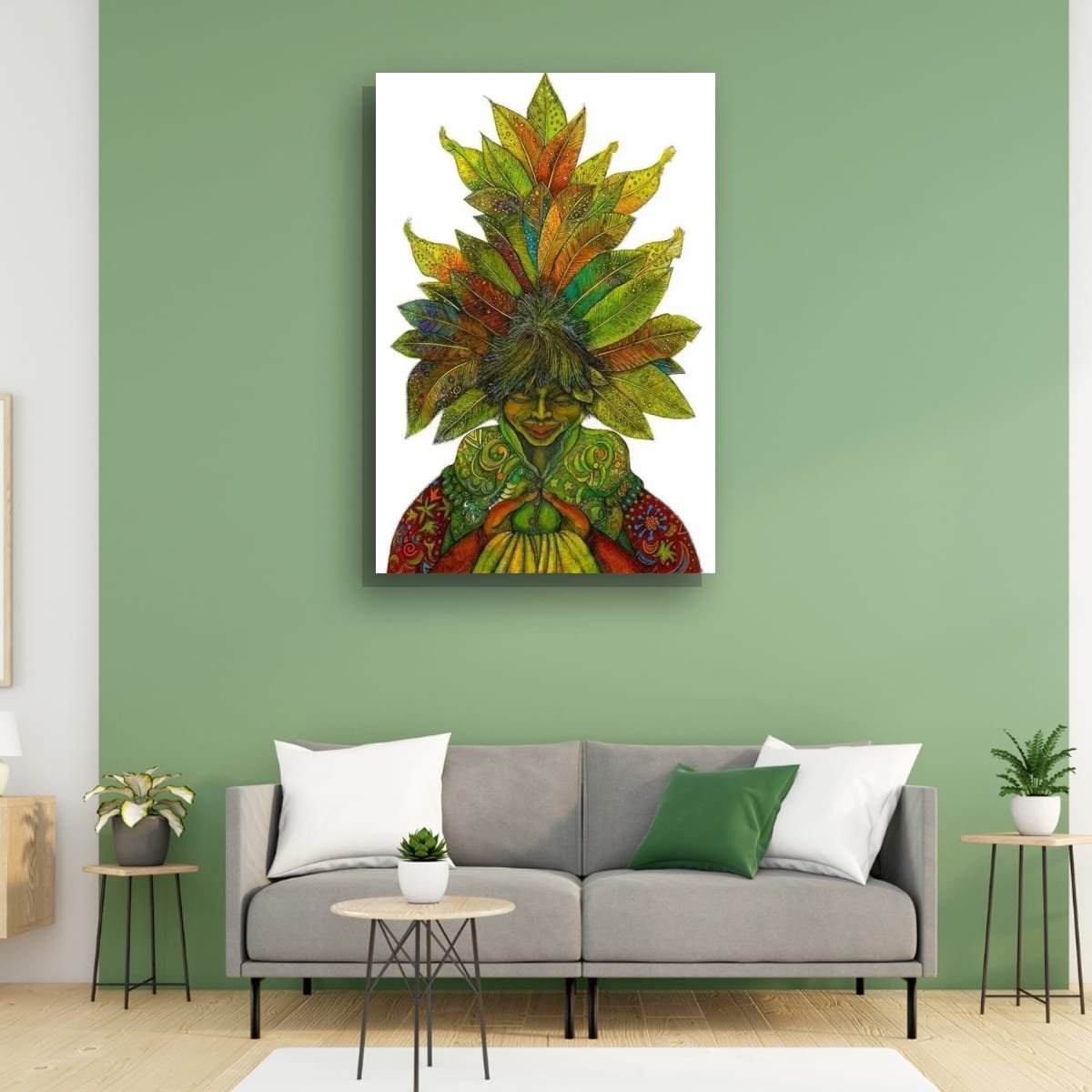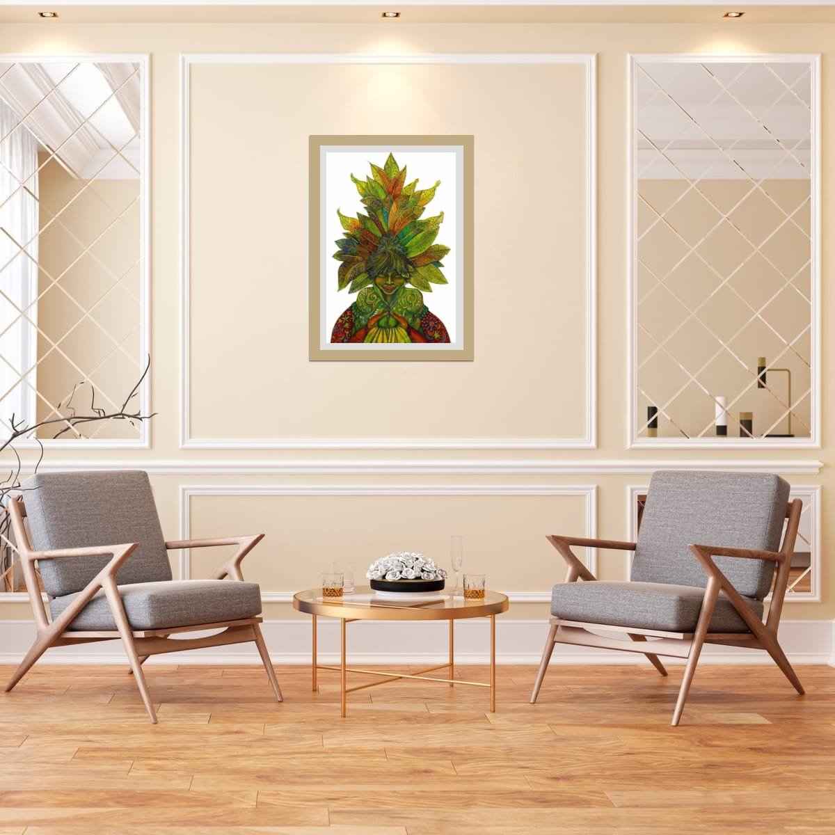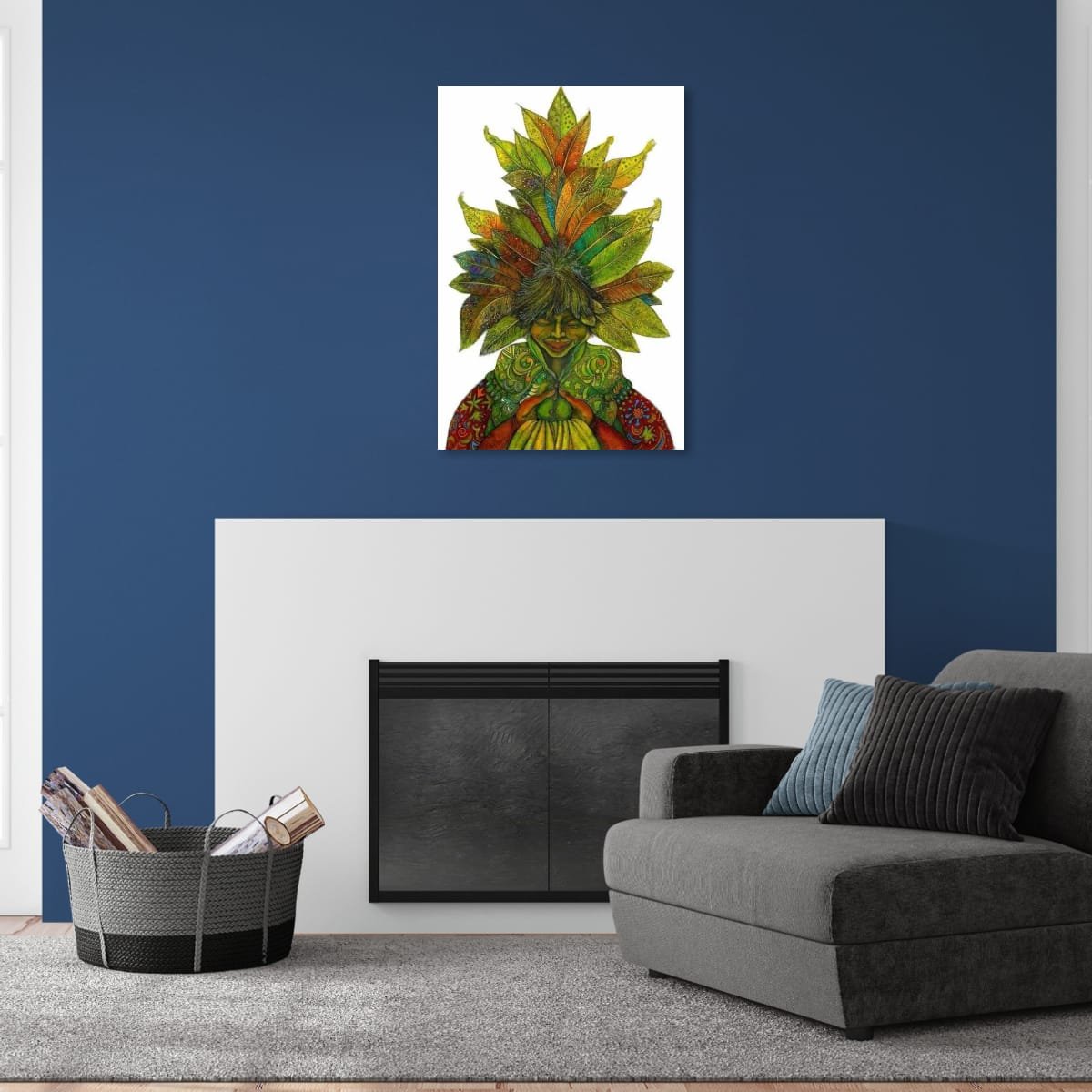 Let this stunning work infuse your space with warmth, color, and reverence for the power of the Earth and the women who hold it.